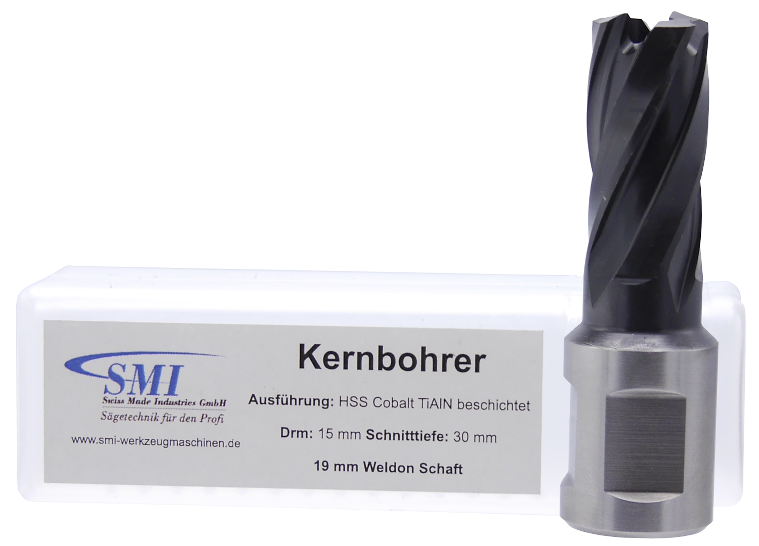SMI HSS TiAlN Kernbohrer 15 mm Drm. 19 mm Weldon Aufnahme