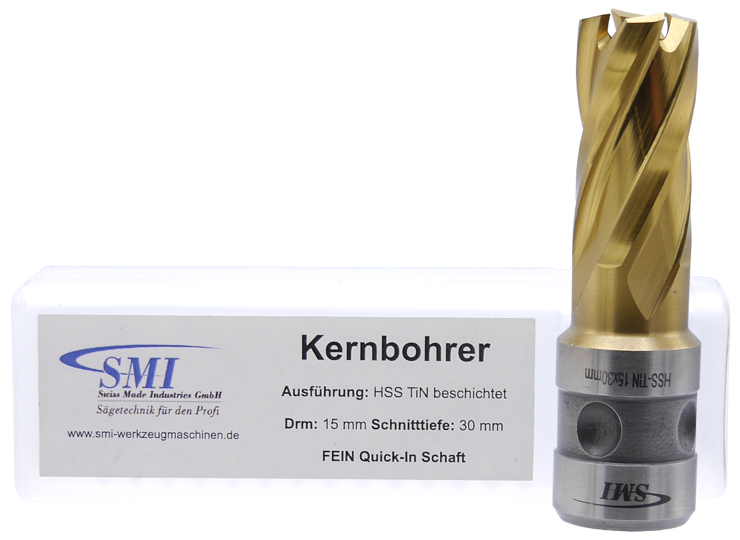 SMI HSS TIN Kernbohrer 15 mm Drm. Fein Quick-In Schaft