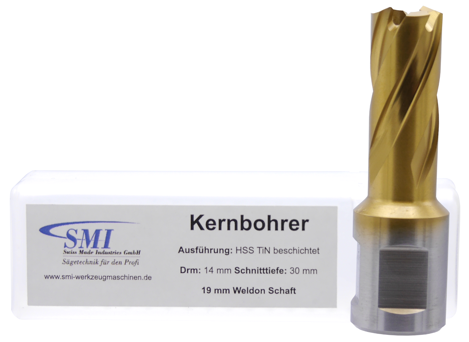 SMI HSS TIN Kernbohrer 14 mm Drm. 19 mm Weldon Aufnahme