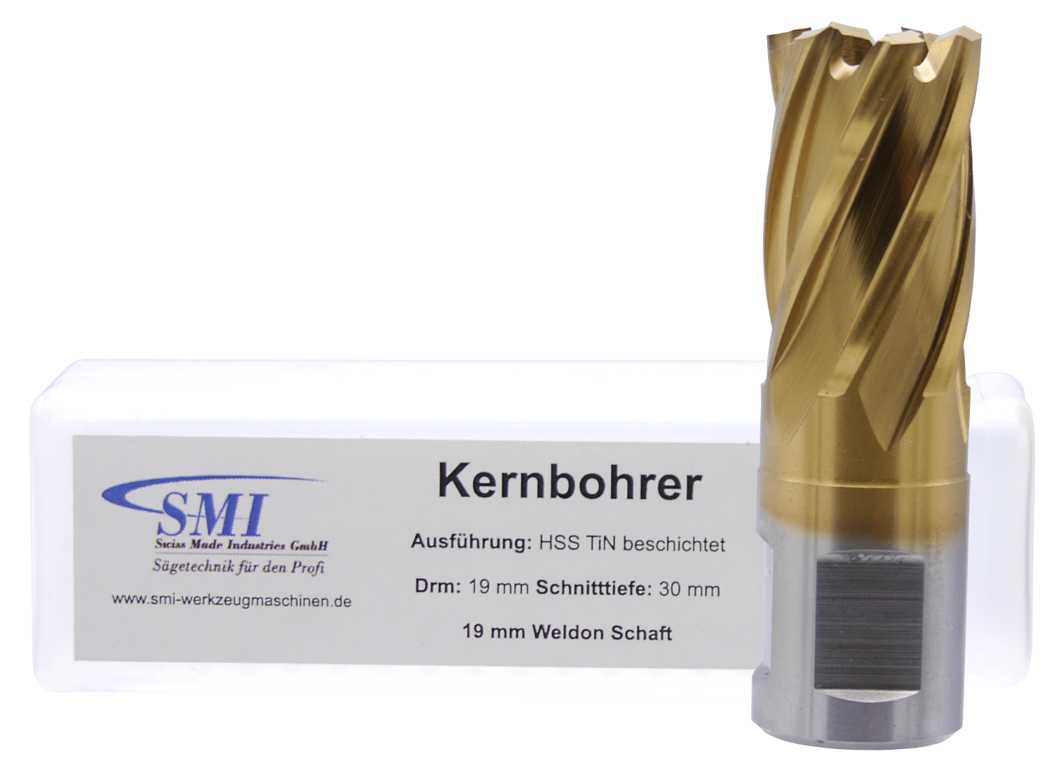 SMI HSS TIN Kernbohrer 19 mm Drm. 19 mm Weldon Aufnahme
